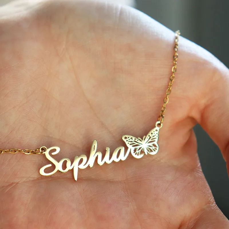 🦋 שרשרת פרפר עם שם – תכשיט שמספר סיפור